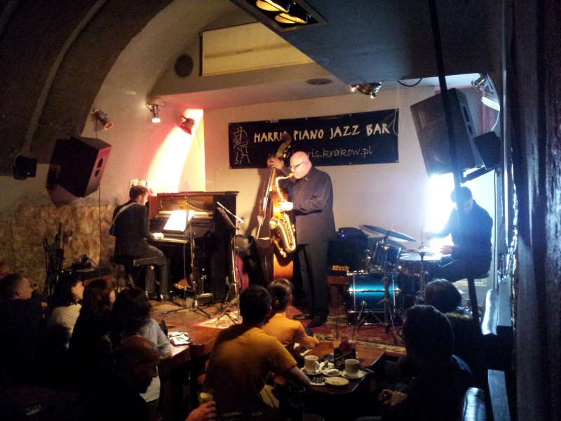Many people were wondering if the fact of beginning Euro 2012 in Poland will influence on second concert’s attendance. It occurred that Paweł’s fans resigned from the second half of match Germany-Portugal and numerously came for the performance Directions in Music: Dexter Gordon to Cracow Harris Piano Jazz Bar. Paweł Kaczmarczyk, Maciej Adamczak, Dawid Fortuna and the invited for the concert special guest Piotr Baron. Musicians thanked audience for coming, taking them to another, filled with melody, dimension of reality.